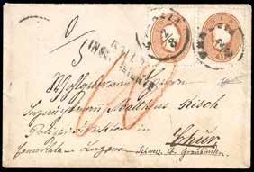 2625 /* GERMANIA LEVANTE 1884/1896 - Quattro cartoline postali e cinque francobolli da 2 m., tutti con annulli dell’ufficio tedesco di Costantinopoli. Pregevole insieme.