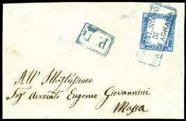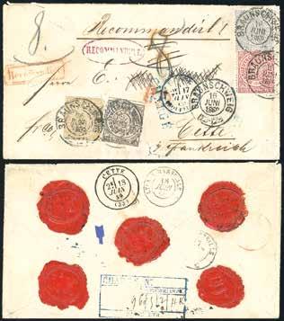 2601 * UFFICI ITALIANI ALL’ESTERO 1866/1885 - Bell’insieme di nove lettere affrancate in partenza dagli uffici di Tunisi ed Alessandria d’Egitto, con presenze anche rare, ottima qualità generale. Molto interessante, elevato valore di catalogo. Ottimo anche per dettaglio.
