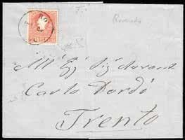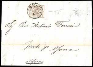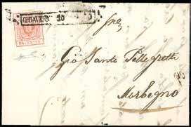 12 * 1850 - 15 cent. rosso, I tiratura (3a), perfetto e ben marginato, su fresca lettera da Como 22/6/1850, annullo SI punti 8, a Sondrio. Primo mese d’uso dei francobolli nel Lombardo Veneto. Ferrario.