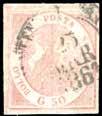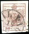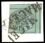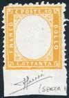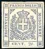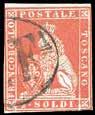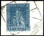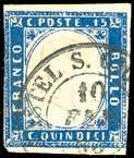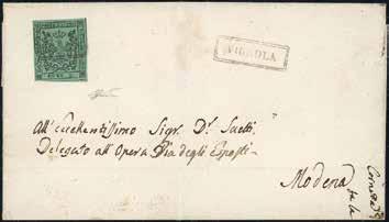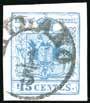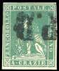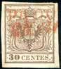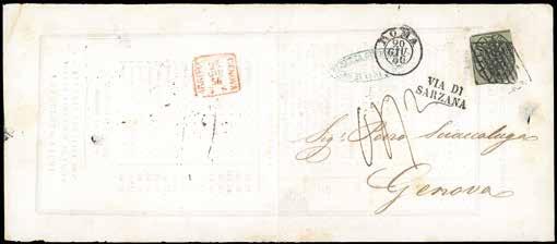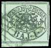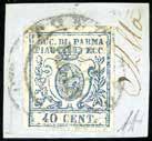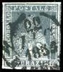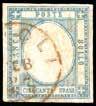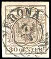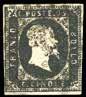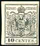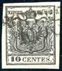 10 1850 - 10 cent. nero, ritocco, dicitura “CENTES” rifatta (2k), usato nei Territori Austriaci, perfetto. Rarissimo questo ritocco usato fuori dal Lombardo Veneto. A.Diena, Ferrario, cert. Sorani.