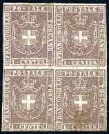 2309 SPAGNA 1855/1873 - Bell’insieme di blocchi usati del periodo. Alcuni firmati Raybaudi/A.Diena.