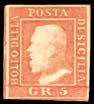 * 1850 - 15 cent. rosso, I tipo, carta a mano, varietà “5” di “15” simile ad un “3” (3a/3o), gomma originale, perfetto. UNICO ESEMPLARE NUOVO NOTO della I tiratura con questa varietà di clichè, finora inedito. Rarità del settore. Cert. Oro Raybaudi.