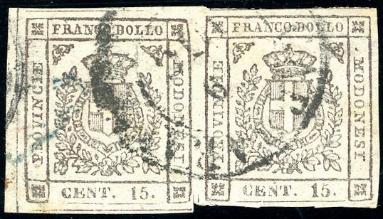 24 r 1851 - 30 cent., I tipo, carta a coste verticali, un esemplare bruno e uno grigiastro (16,16a), perfetti, usati rispettivamente a Milano e a Verona.