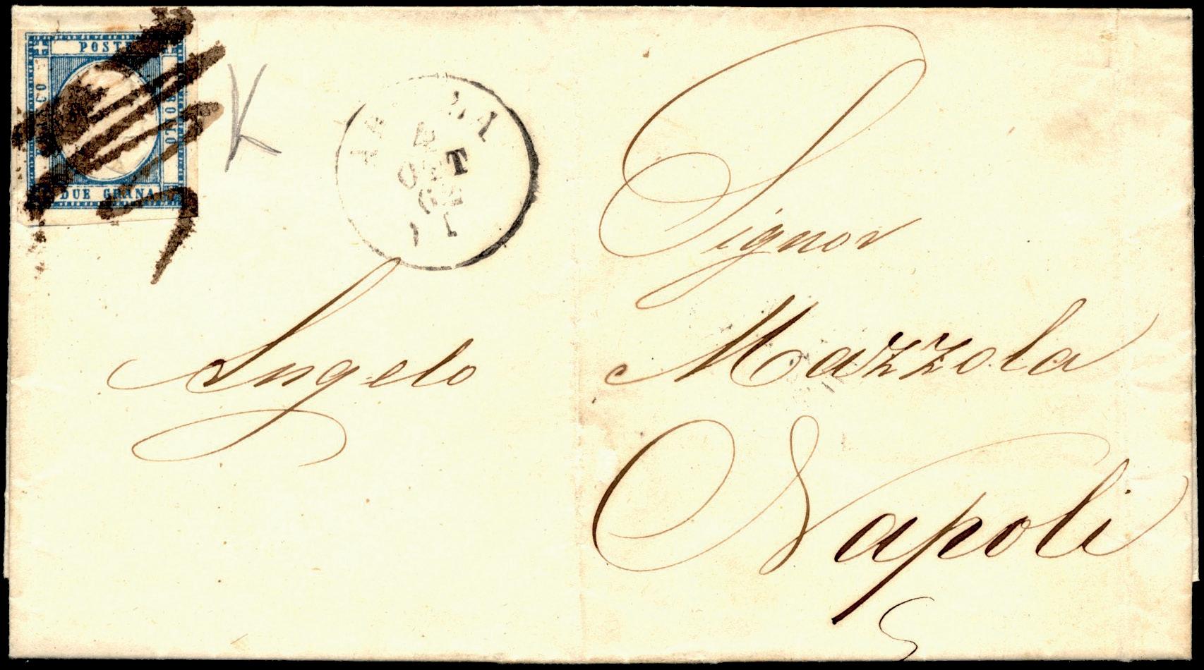2689 */* PROVINCE NAPOLETANE 1861 - Bell’insieme di sei lettere e dieci francobolli, tutti con ritocchi o varietà di clichè. Raro insieme, per specialista.