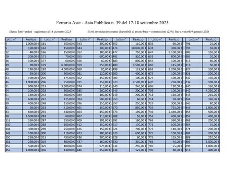 Prossime Aste Ferrario: Settembre/Dicembre 2023