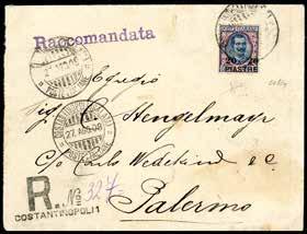 2512 * UFFICI POSTALI ALL’ESTERO 1876/1913 - Quattro buste e una cartolina con francobolli del periodo.
