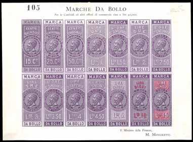 2572 (*) MARCHE DA BOLLO 1963 - Sei marche da bollo Vittorio Emanuele II, tutte soprastampate “saggio”, non dentellate, nuove senza gomma, perfette. Una Sorani.