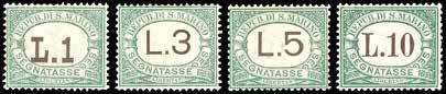 2521 **/* SAN MARINO 1894/1999 - Piccolo insieme di esemplari dell’emissione (26,27,28x3,30), gomma originale, integra per tre esemplari, perfetti.