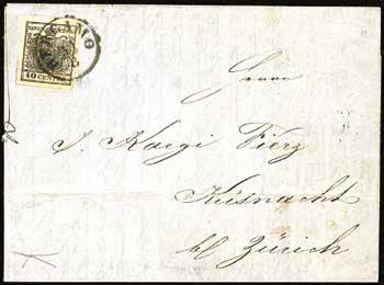 8 * 1856 - 10 cent. nero intenso, carta a mano (2d), perfetto, isolato su circolare a stampa da Bergamo 31/8/1856 per la Svizzera. Tariffa estremamente rara, pochissimi casi conosciuti. Cert. Bottacchi. Ex coll. Imperato.