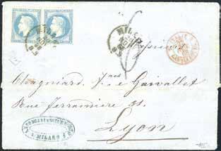 2533 /* FRANCIA 1850/1862 - Tre francobolli, due lettere ed un frontespizio delle prime emissioni.