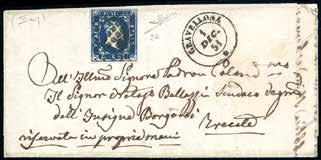 11 * 1852 - Lettera spedita da Mosca, in Russia, in porto pagato in denaro, bollo di partenza “Moscau” e stampatello diritto in rosso “Porto”, a Milano, via di Vienna, dove fu tassata e detassata. Giunta a Milano il 22/7/1852 fu rispedita ad Alzano previa affrancatura con 15 cent. rosa, II tipo (5), perfetto. La missiva già molto rara per la sua provenienza, è il primo caso, in ordine temporale, di lettere spedite dalla Russia, verso gli Antichi Stati Italiani, giunta a destino affrancata con un francobollo. Per grande collezione specializzata. Cert. Bottacchi e Ferrario.