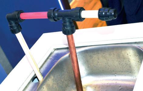 En cuanto a la tubería para el canal Ferretero-Plo mero, Coflex ofrece su línea de Conexiones Rápidas Universales (CRUs) con tecnología Sharkbite, sistema profesional para ampliar y reparar tuberías de agua de CPVC, cobre y PEX, que cuenta con Coples de Re paración Deslizables, Ts, Adaptadores Macho, Válvu las de Esfera, Codos 90o, Coples de Unión Rectos y Tapones Hembra.