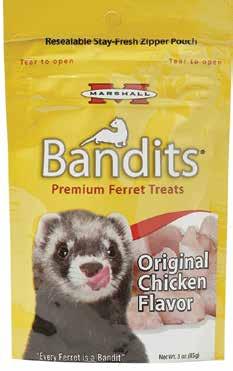 Ferrets flip over the intense flavor of our Marshall Bandits Premium Ferret Treats. Available in Meaty Bacon, Original Chicken, Banana and Peanut Butter flavors. Bandits are soft and chewy morsels that provide an exciting flavor while still upholding a healthy nutritional value for your pet. Bandits are protein based, making them a healthy choice for you to feed your pet. Used by the world’s largest ferret breeder, Bandits will keep your pet coming back for more.
