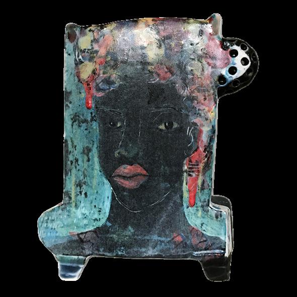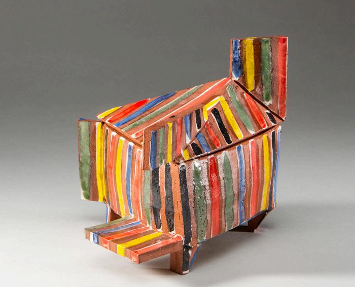 Among the most celebrated ceramic artists of the past century is Betty Woodman, and Schonfeld acquired several important works that appeared in Woodman’s 2006 retrospective at the Metropolitan Museum of Art, Schonfeld’s collecting, however, was not based on assembling a cache of high profile names, She was equally drawn to works by emerging artists. Her keen eye led her to become an early supporter of artists like Lauren Mabry, whose abstract compositions on ceramic cylinders playfully straddle the line between image and object Works in Schonfeld’s collection range from minimalist to Baroque, not necessarily connected stylistically, but rather by the strong viewpoints and personalities of their makers.