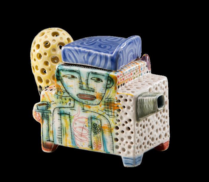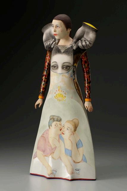 Mutual Affection featured nearly 100 contemporary ceramic works from the comprehensive collection of Victoria Schonfeld. Vicki and I met more than 30 years ago when she was just starting her life in collecting. Based in New York, her focus on narrative works and work by women artists guided her collection. In turn, her collection helped shape her life until her unfortunate passing in 2019. Alex Renee, one of our collection specialists, carefully documented the Schonfeld Collection, working closely with her family and curator Garth Johnson to bring this collection to the Everson Museum of Art where it was on view in 2021-2022 With exhibitions such as this, collectors like Vicki are able to continue their important contributions to the field and their positive impacts on the working lives of artists.