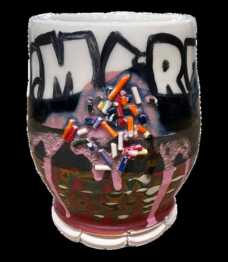 Although McNicoll is well known for her richly patterned functional ceramics, Schonfeld gravitated to her sculptures, which often carried stridently political messages Schonfeld’s support for women extended across generations and international boundaries. SHe frequently bought pots from artists like Susan Thayer, Gail Kendall, and Shoko Teruyama, and kept her kitchen cabinets well stocked with cups, bowls, plates, and serving pieces from female potters across the globe. The vast web of her personal connections to the artists in her collection was brought to life when she served food to guests at her Manhattan apartment on handmade pots from her collection With the Everson’s long history of female leadership and support for women in the arts, Schonfeld’s gifts to the Museum are especially resonant.