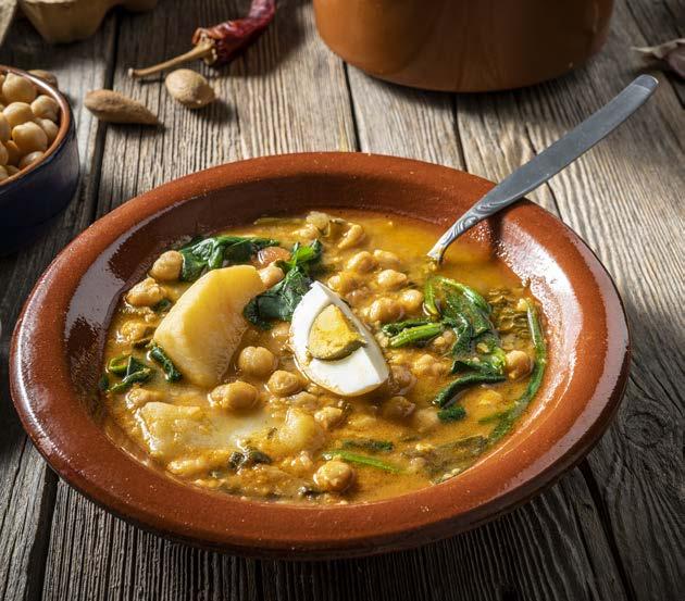 You can’t have Holy Week without a legume stew. In a restaurant or at your grandmother’s house, vigil chickpea stew is the best example for this period. It is a broth that dates back to medieval times containing chickpeas and cod, without forgetting the traditional touches of hard-boiled egg and spinach. It is usually served on Fridays in Lent and its name comes from the dates that are commonly known as vigilias(vigils), alluding to the Catholic practice of abstaining from eating meat.