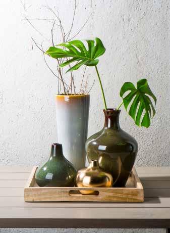 Varenr.: 235007 Vase Sonja i håndlaget glass grønn H:50 cm Varenr.: 234052 Vase glasur grønn/brun H:31 cm