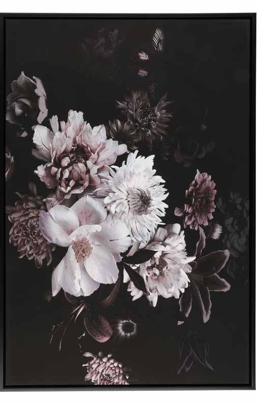 Varenr.: T607118 Bilde blomsterbukett 60x90cm Varenr.: T630254 Lysglass Riekko plomme 10cm Varenr.: T624216 Potte Pilvi 13cm hvit