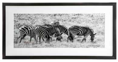 Bilde m/sort ramme fotoprint av sebra sort/hvit H:35 B:70 cm