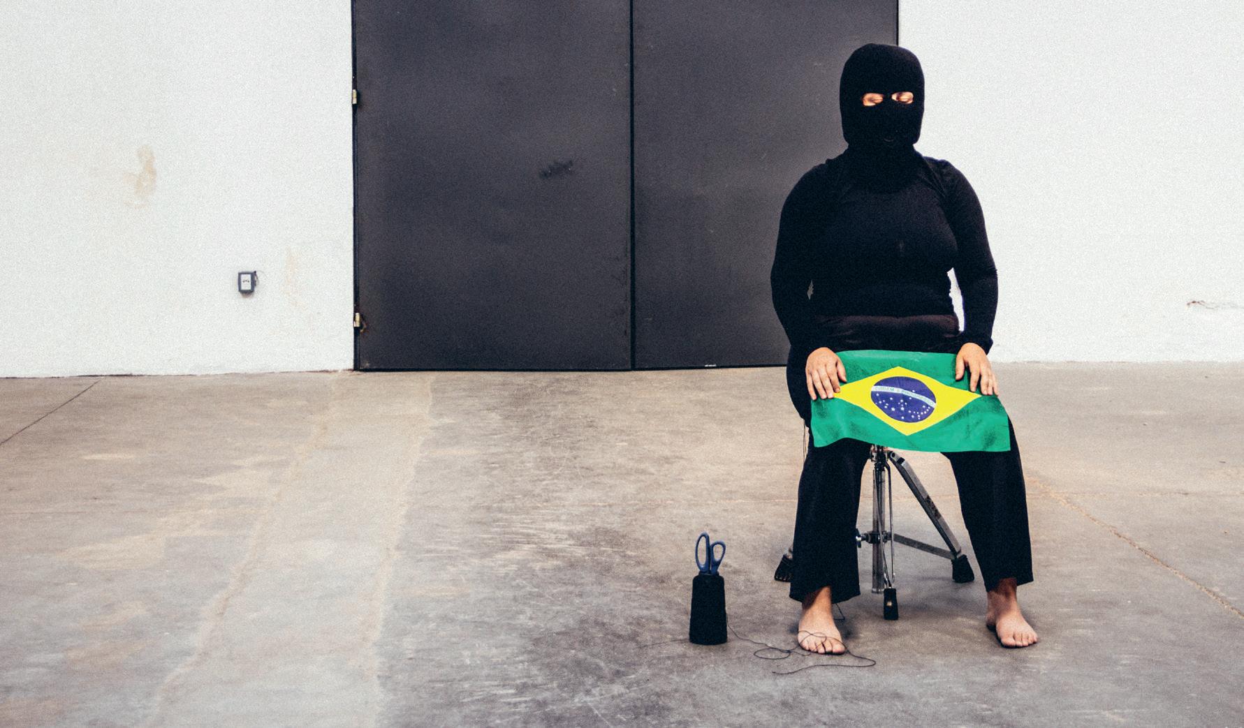 Vestindo roupa preta e capuz preto, ao som de um hino nacional distorcido, a artista Jocarla alinhava com linha preta cruzes sobre a bandeira do Brasil. A performance “Invisíveis à pátria armada” é em memória de mulheres vítimas da covid-19. Num Brasil que matou mais mulheres gestantes e puérperas no mundo, demonstrando a invisibilidade por este fato quase não ser comunicado em notícias pelo País. Mães que perderam crianças, crianças que perderam mães.