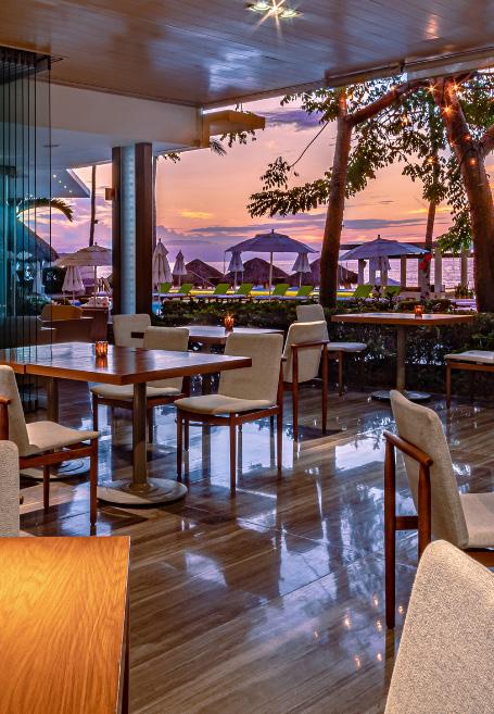 A lo largo del día, la cálida atmósfera de Sea Breeze recibe a los huéspedes para el desayuno, la comida y la cena. Los ingredientes frescos y naturales se transforman en una variada selección de especialidades internacionales, mientras que las pizzas horneadas en nuestro horno de leña, y las carnes y pescados preparados en nuestra parrilla son las estrellas indiscutibles del menú. Para maridar, cocteles innovadores y una extensa carta de vinos.