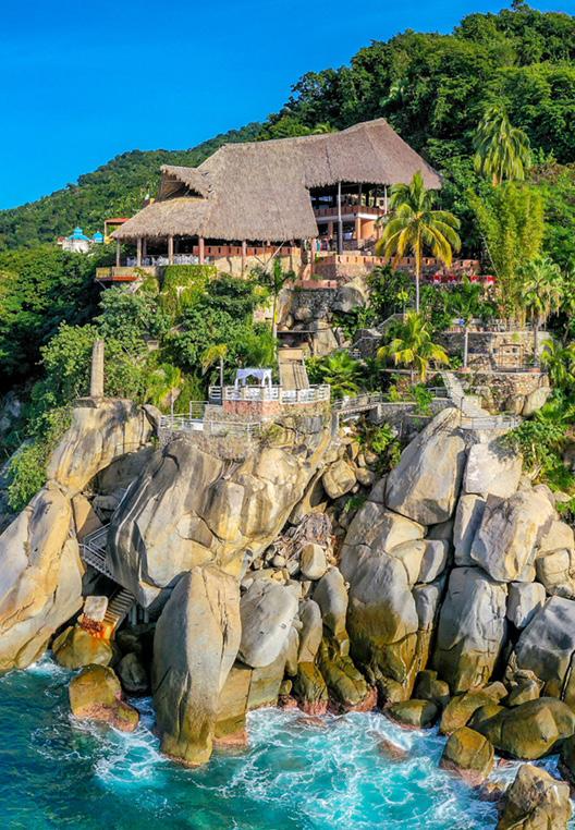 Inspirado de la leyenda Huichol del venado azul, Venazú sintetiza un diseño moderno tanto al interior como al exterior con un patio con vistas amplias y una vibra festiva que evoca a un pueblo mexicano durante una larga fiesta. Paredes de rayas coloridas, máscaras vibrantes de animales y cristalería mexicana–que te invitarán a festejar un show culinario. Este restaurante sirve sabores mexicanos contemporáneos en un ambiente acogedor, relajado y una impresionante vista panorámica al océano Pacífico.