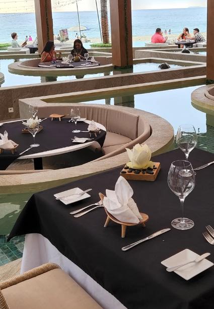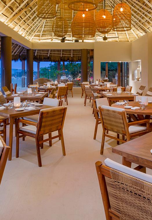 Punta de Mita dresses up in white and sophistication with the unique flavors of Thierry Blouet. A true feast of fresh, organic ingredients and the traditional cuisine found at the Mexican Pacific coast.The elegant, yet relaxed atmosphere of the seaside worldclass restaurant Tuna Blanca is the spot where locals and visitors gather to treat themselves to exceptional cuisine, romantic settings, and splendid sunsets.