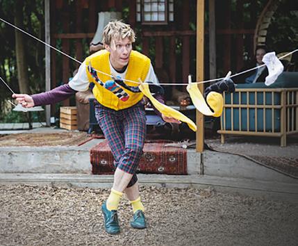 English: Feel welcome on this farm and estate with site specific theatre, workshops and circus.