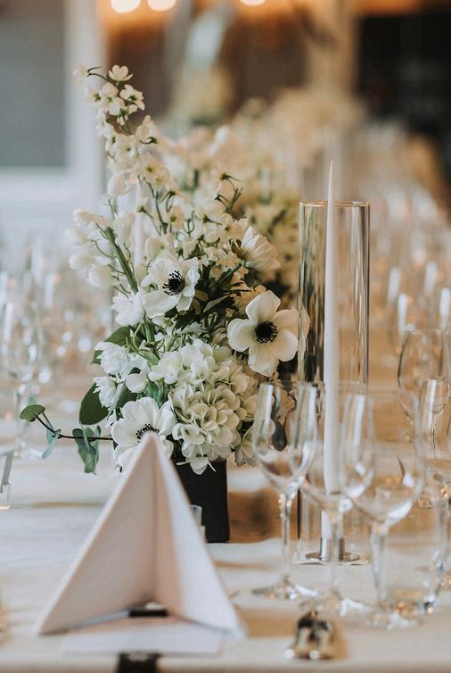 Anbefaler alltid ekte blomster på bord som er nær gjestene - vi leverer også ekte blomster etter ønske.