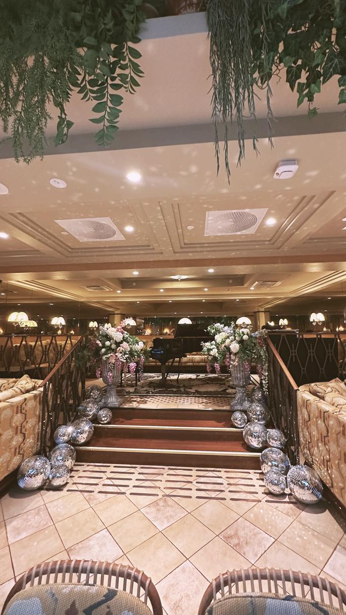 Her sto vi for champagnetårn, kunstige blomster, ekte blomster på bord, trær og kandelabre leid av oss. Leie av led kubbelys og høye lys med glass på bord. Opp/nedrigg.