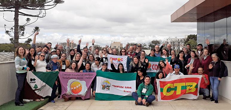 Aconteceu em Brasília, no fim de agosto, o 1º módulo do “Curso Comunicar o nosso mundo para semear Margaridas”, que teve como tema central “Jovens Margaridas semeando a Comunicação Popular Feminista. Os objetivos do evento foram debater a tecno logia como dispositivo de poder e a comunicação como elemento de disputa hegemônica; discutir a importância de uma comunica ção popular que comunica o nosso projeto de sociedade; e pensar estratégias de comunicação popular que dialoguem com a cam panha eleitoral, Marcha das Margaridas e Festival da Juventude. Participaram do evento a secretária de Mulheres da CONTAG e coordenadora da Marcha das Margaridas, Mazé Morais, a secre tária de Jovens, Mônica Bufon, e a secretária de Meio Ambiente, Sandra Paula Bonetti. A Fetaep foi representada por Daniele Botorin, do STTR de Bocaiuva do Sul.