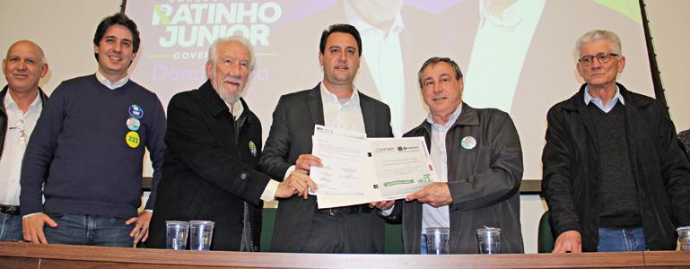 O governador Ratinho Junior, candidato à ree leição no Estado, também visitou a sede da Fetaep, em Curitiba, onde foi recebido pela diretoria da federação e por dirigentes e funcionários de sindi catos da regional Curitiba. O governador - que veio acompanhado do vice-governador Darci Piana e do secretário de Agricultura e Abastecimento Norberto Ortigara - recebeu do presidente da Fetaep Aparecido Callegari o documento feito em conjunto pela Fetaep e Fetarp, com propostas de políticas públicas e ações voltadas aos trabalha dores do campo. Outro documento elaborado