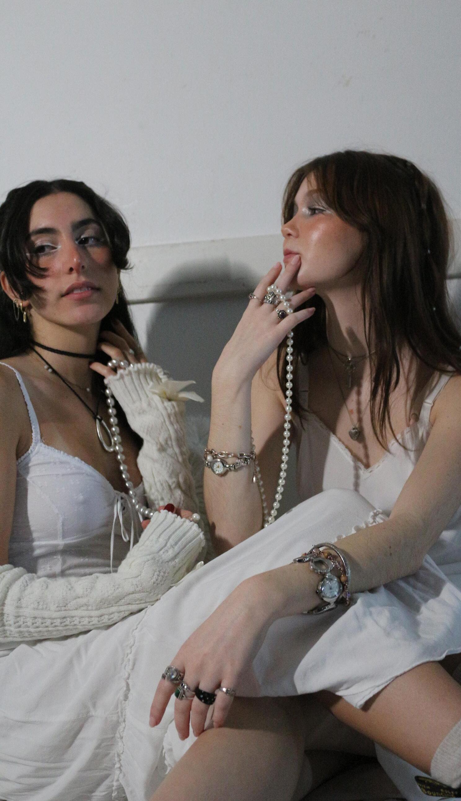 Pearls and chains convey high sophistication and raw edginess. So, why not mix and match these styles on one innovative canvas?