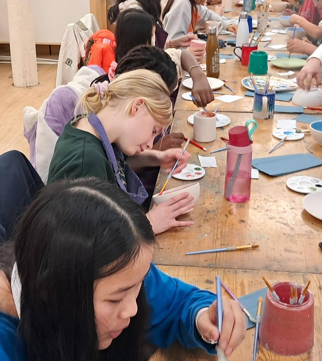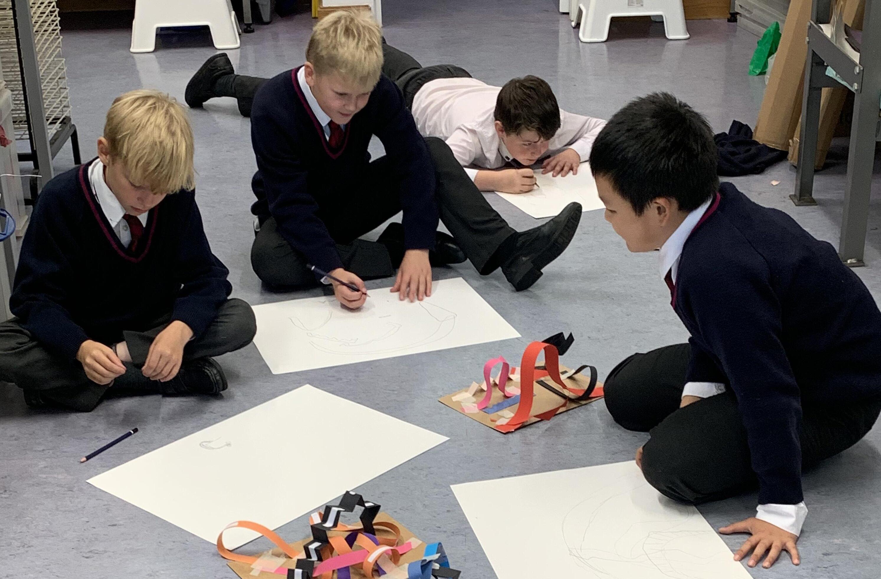 T Form have developed their observational drawing skills and learned how to scale up their work. They explored a range of media including charcoal and paint, resulting in bold, expressive pieces that show growing confidence and skill.