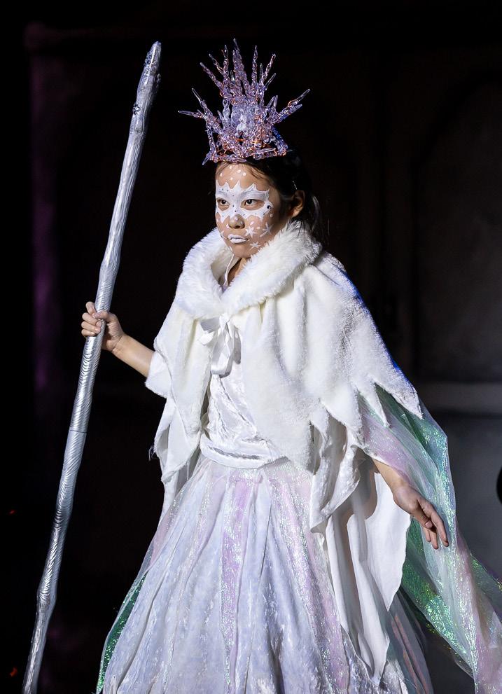 We were immersed in the magical realm of Narnia, through a beautiful set, including an icy white woodland, a glimmering lamppost, and - above the iconic wardrobe - the stunning figurehead of the glorious Aslan. The magnanimous hero was an extraordinary sculpture, made with incredible artistry, and brought to life with marvellous vocalisation. The captivating effect of the production was further enhanced by evocative music, atmospheric lighting and a glorious array of costumes, portraying the famous fantastical world.