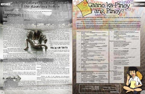 Trick-or-truth Horror stories spread through wind and fly even across the walls, but how can one unbridle the mysteries behind such questionable existence of the haunted? Seymour Sanchez, an FEU Mass Communication professor, lives in the principle ‘seeing is believing.’ He said, “Hindi ako naniniwala sa third eye. Although marami akong kaibigan na nagsasabing may third eye raw sila. Siguro hindi rin naman [kasi] ako nakakakita. So ‘pag hindi ako nakakakita ng multo, hindi rin ako naniniwala… Ang tingin ko baka psychological… baka ini-interpret nalang s’ya as existence [of ghosts] (I don’t believe in third eye. Although I have friends claiming they have one. Maybe this is because I don’t see ghosts. So I don’t believe what I don’t see… I think it has something to do with psychology… Maybe they just interpret it as existence of ghosts).” Shadows walking along narrow dark roads and feet-freezing dead woman looking through a mirror are all in the mind… or are they? Paranormal expert and founder of Mysterium Philippines Robert Rubin, justifies that there are spirits who refuse to leave the surface. He said, “Ghosts basically represent residual energy and emotion of a person who is left behind. Not all the time a person becomes a ghost, sometimes they just proceed on. In other cases, they linger behind because of numerous reasons.” However, in spite of such explanation and phenomenon experienced by an ‘evil’ eye, the route towards the discovery of its validity is still dark and blurry. According to FEU Psychology professor TJ Peralta, “There are things in life that are very mysterious, that Science has a hard time explaining… ESP is one of those because you cannot measure that scientifically… as of now.” Refusal to agree doesn’t guarantee a good night. Thus, when the moon takes over the sky and makes the room pitch-black, hold on to that blanket – make sure that closet is closed – someone… or maybe, ‘something’ is out there to get you.