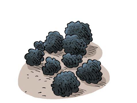 D’autres édifices volcaniques sont principalement constitués de cendres, de lapilli (→ page 13) et de bombes volcaniques (→ page 17) plus ou moins consolidés en eux.