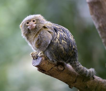 Le ouistiti pygmée est long de 15 centimètres, sans sa queue. Il vit dans les arbres et fait des sauts de 5 mètres, soit 33 fois plus que sa taille !