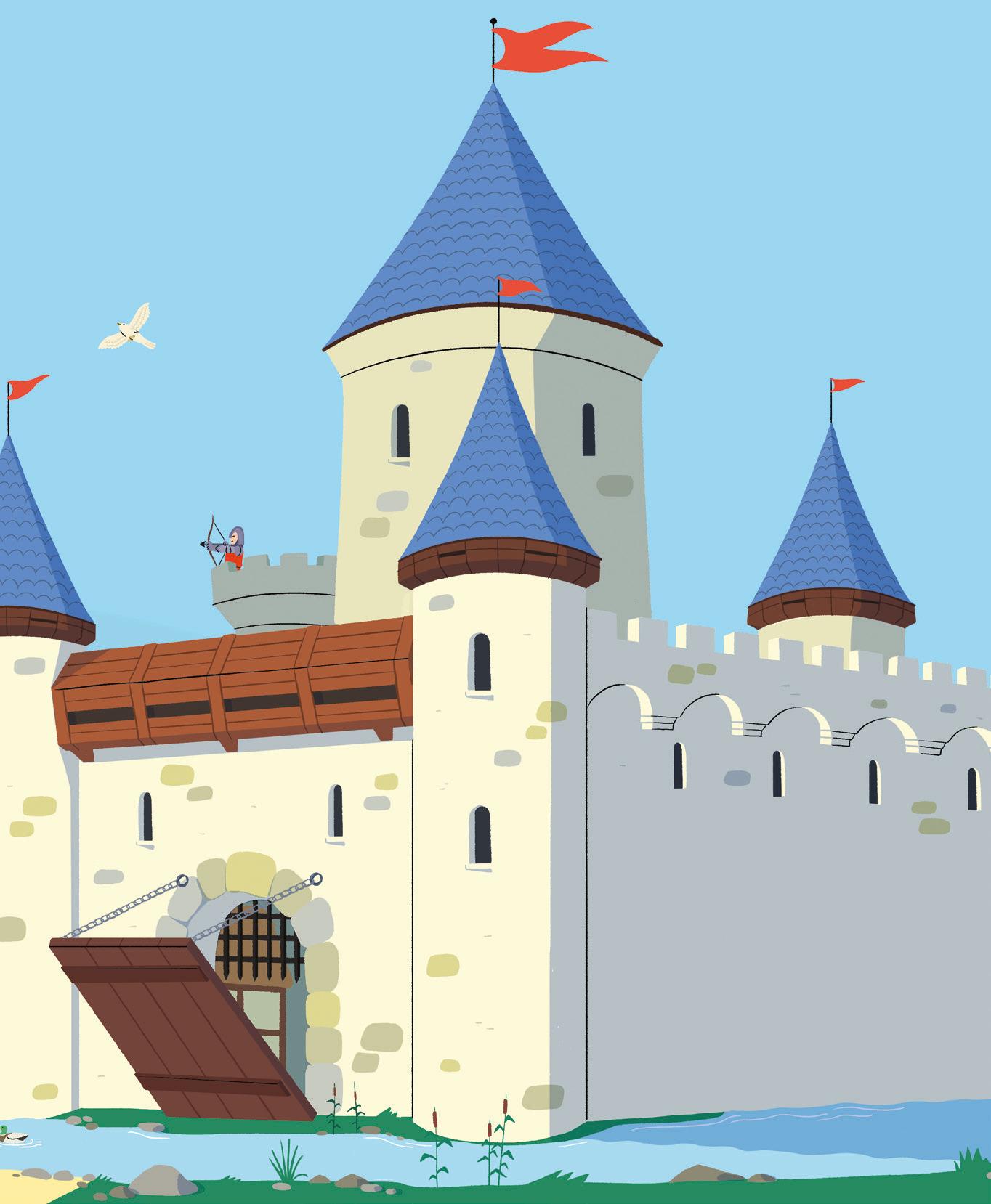 Un château fort, c’est tout simplement la demeure fortifiée d’un seigneur. Avec ses remparts, ses tours, ses fossés et son pont-levis, le château fort est conçu pour être une citadelle imprenable.