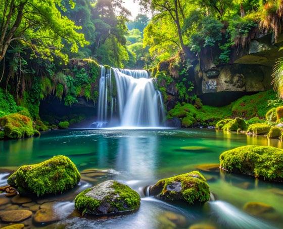 Légèrement inquiet, Lazulo décide de se rendre à son tour sur les rochers qui se trouvent près de la cascade. Il parvient à contrôler sa peur et à s’approcher de l’eau dormante. Il avance à petits pas, très prudemment. Une fois au bord de l’eau, il jette un