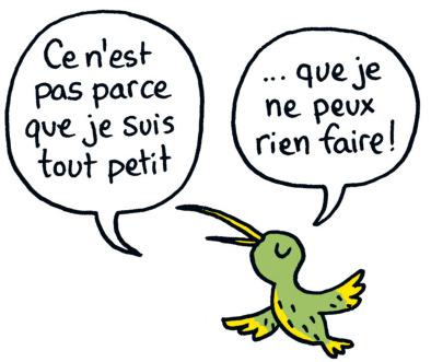 Le colibri répondit : « Je sais, mais je fais ma part. »