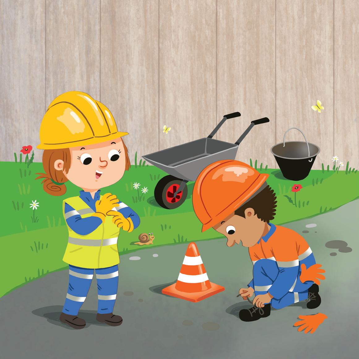 Pour éviter les accidents, chacun doit mettre un casque, c’est obligatoire ! Il faut aussi enfiler un gilet fluorescent pour être bien visible. Les ouvriers portent des gants et des vêtements résistants. Leurs chaussures sont renforcées avec du fer au bout pour ne pas risquer de se faire écraser les doigts de pied sous un objet lourd.