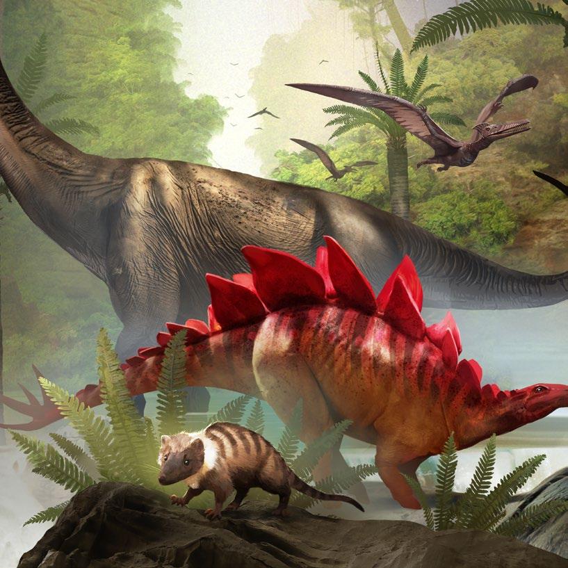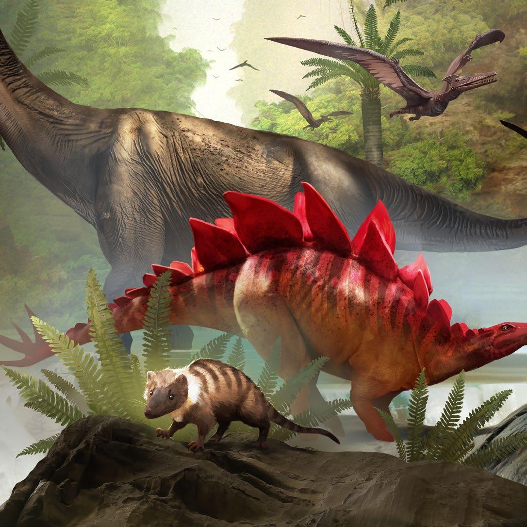 Les mammifères apparaissent au cours du Jurassique. Ce sont des animaux à sang chaud, couverts de poils, qui donnent naissance à leurs petits. Une des clés de leur succès ? Leur oreille ! Certains os du crâne se transforment, améliorant leur audition pour repérer proies et prédateurs. Surtout actifs la nuit, ces petits animaux discrets, souvent semblables à des souris, mangent des insectes et vivent cachés sous des feuilles ou dans des terriers. Dans l’ombre des dinosaures, certains évoluent en herbivores aux dents complexes, d’autres en redoutables chasseurs ! Et leur histoire ne fait que commencer…