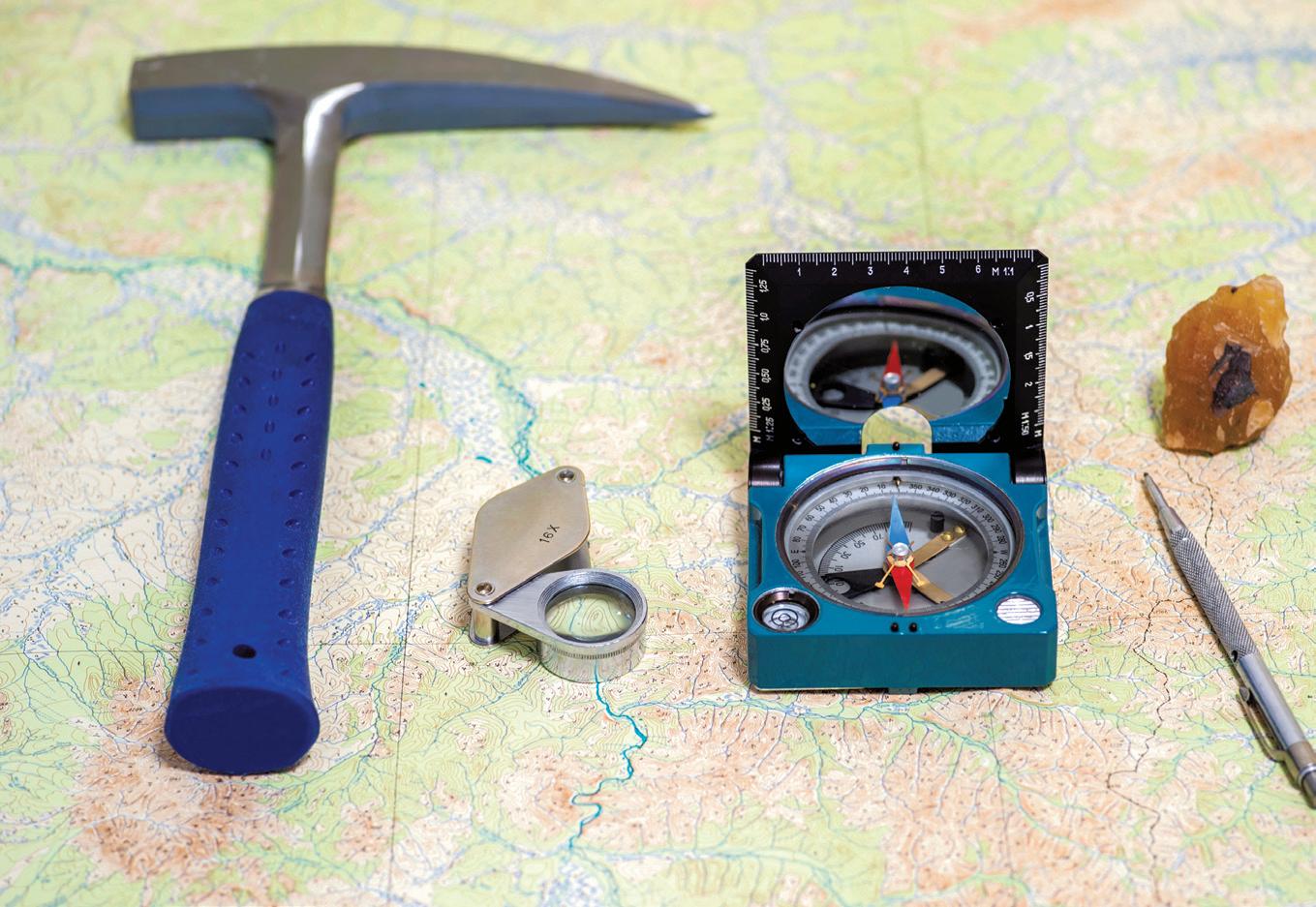 Pour réaliser ses observations et analyser le terrain, le géologue s’équipe d’outils qui lui sont précieux. Voici les principaux outils :