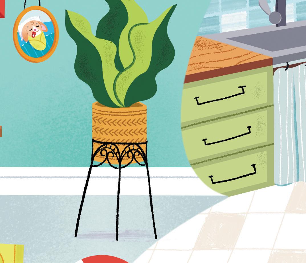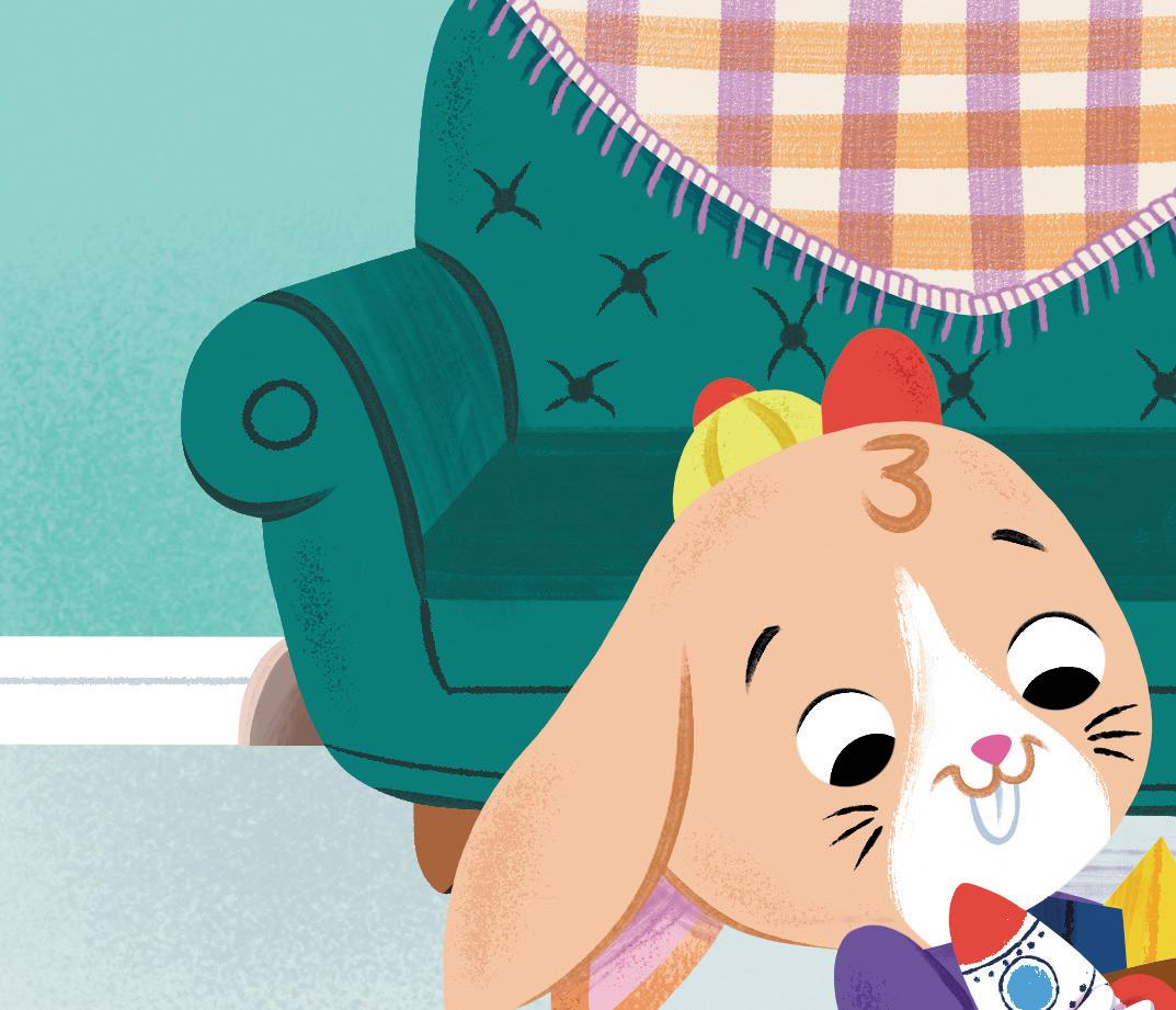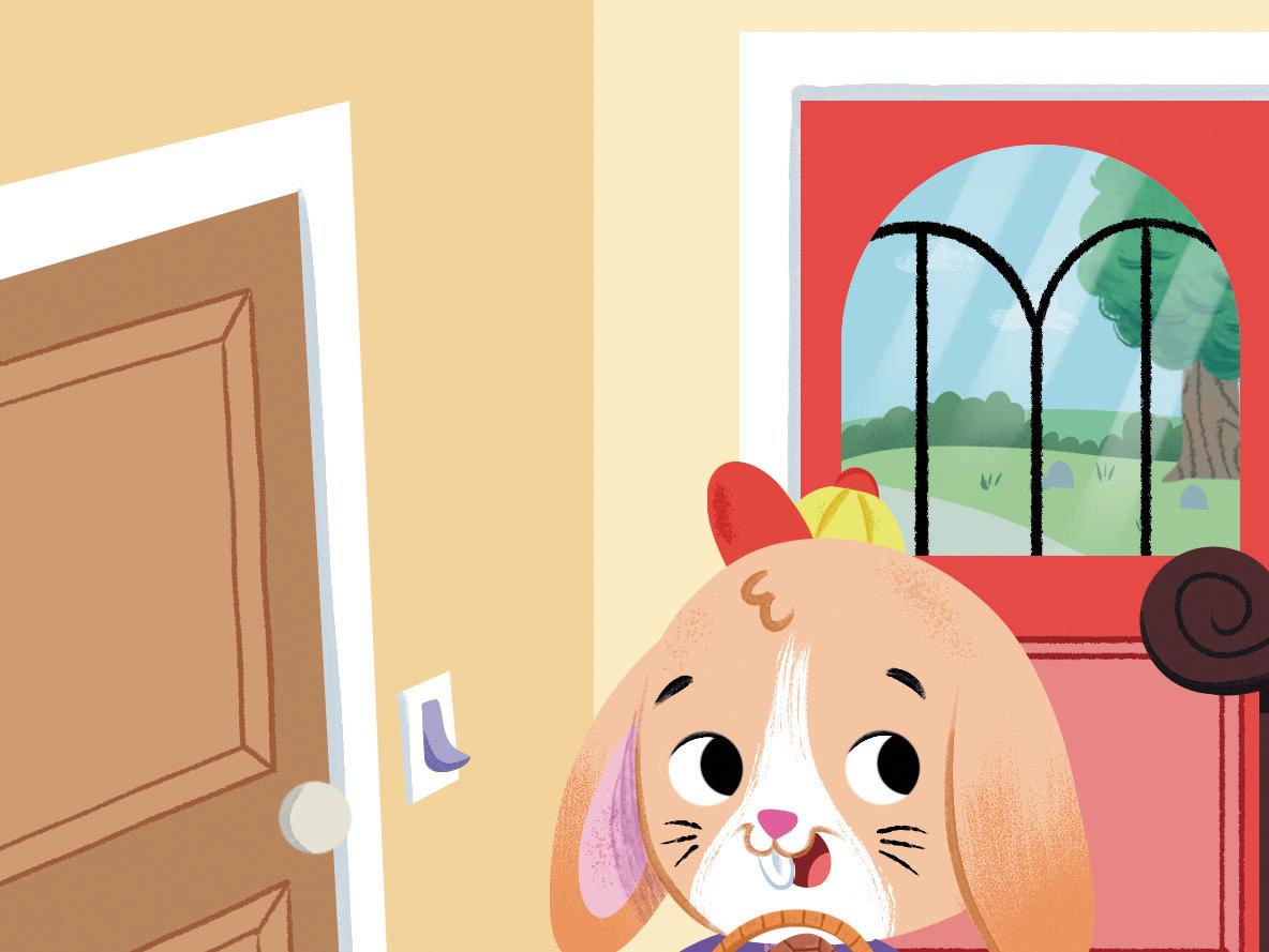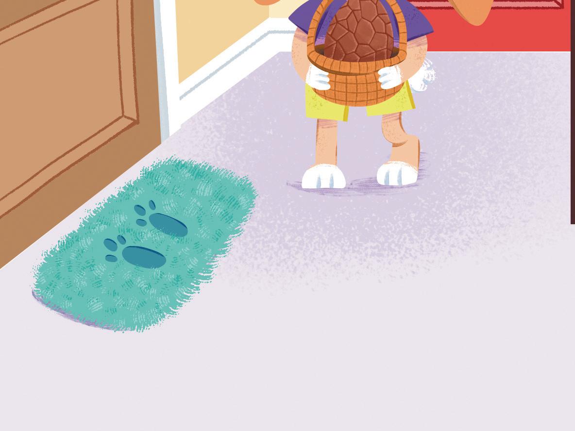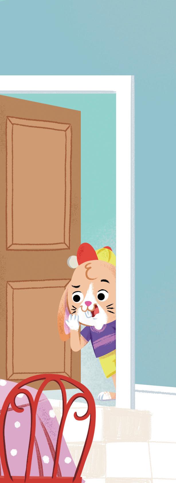 Albin Lapin range ses jouets. Le salon doit être impeccable. Ce soir, c’est la fête. Ses voisins apporteront les œufs de Pâques qu’ils ont dénichés ce matin dans le jardin de l’immeuble, chacun un. Albin ne se lasse pas d’admirer le sien qui promet d’être savoureux ! Il ne résiste pas et entrouvre à nouveau la porte de la cuisine. Quelque chose l’étonne. Il se rapproche.