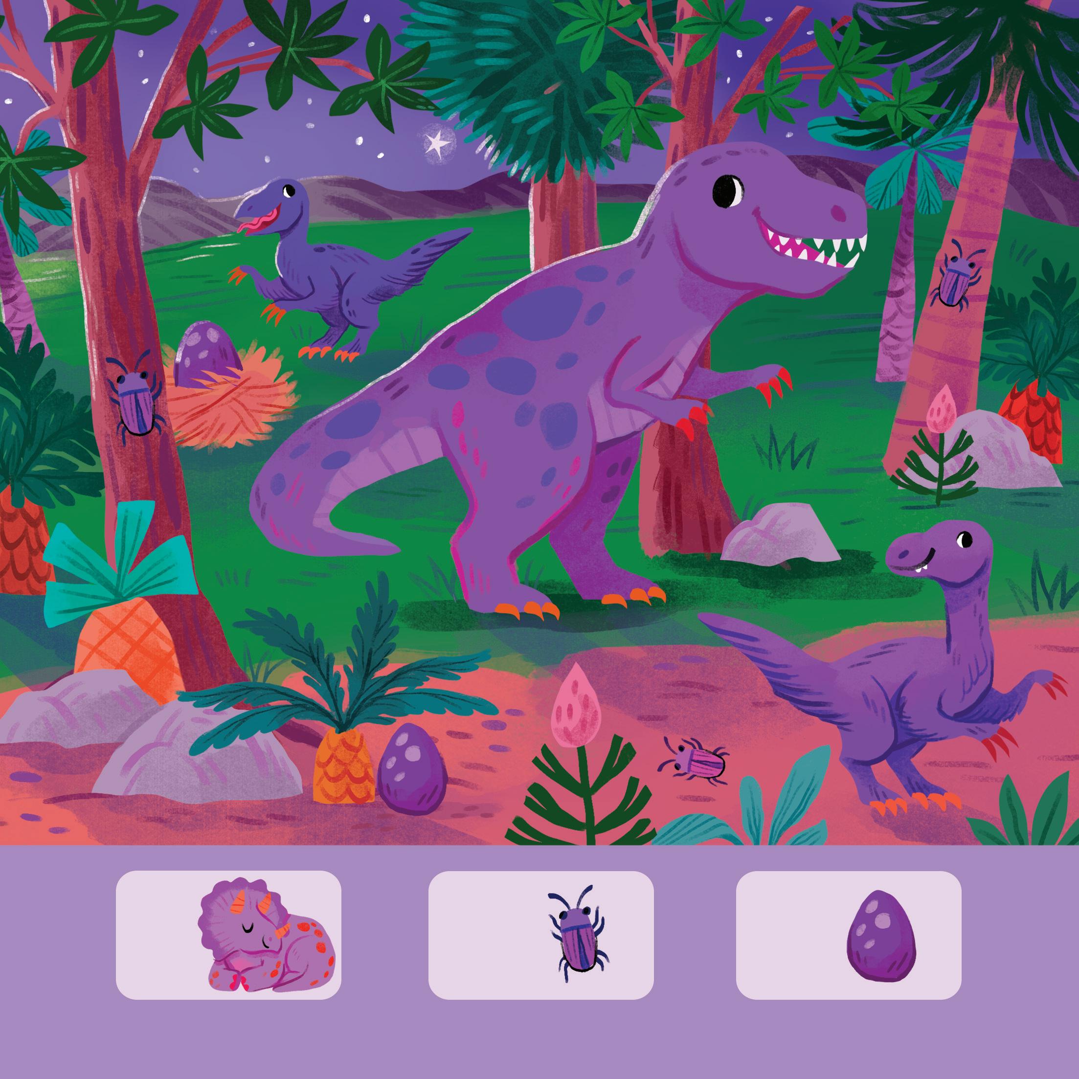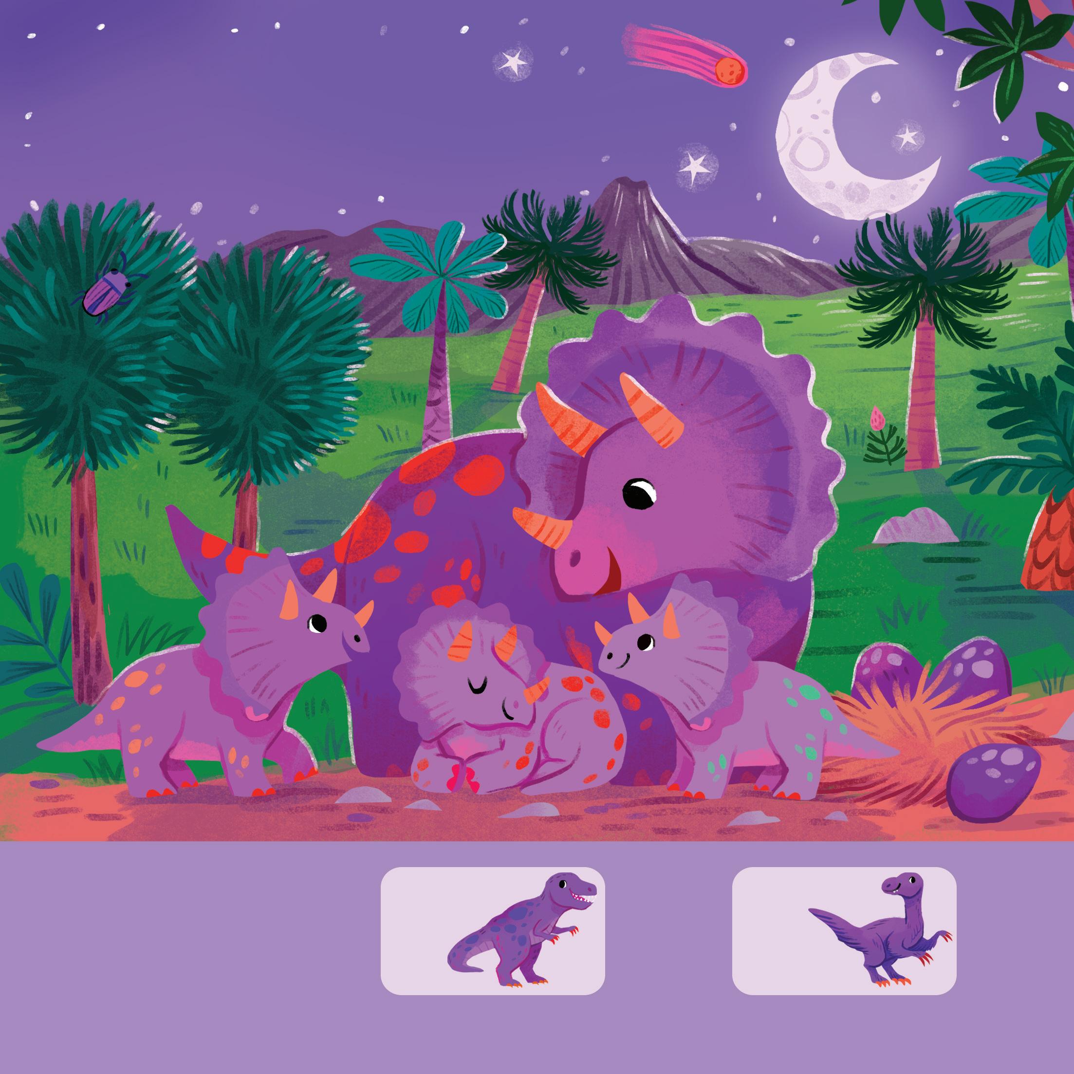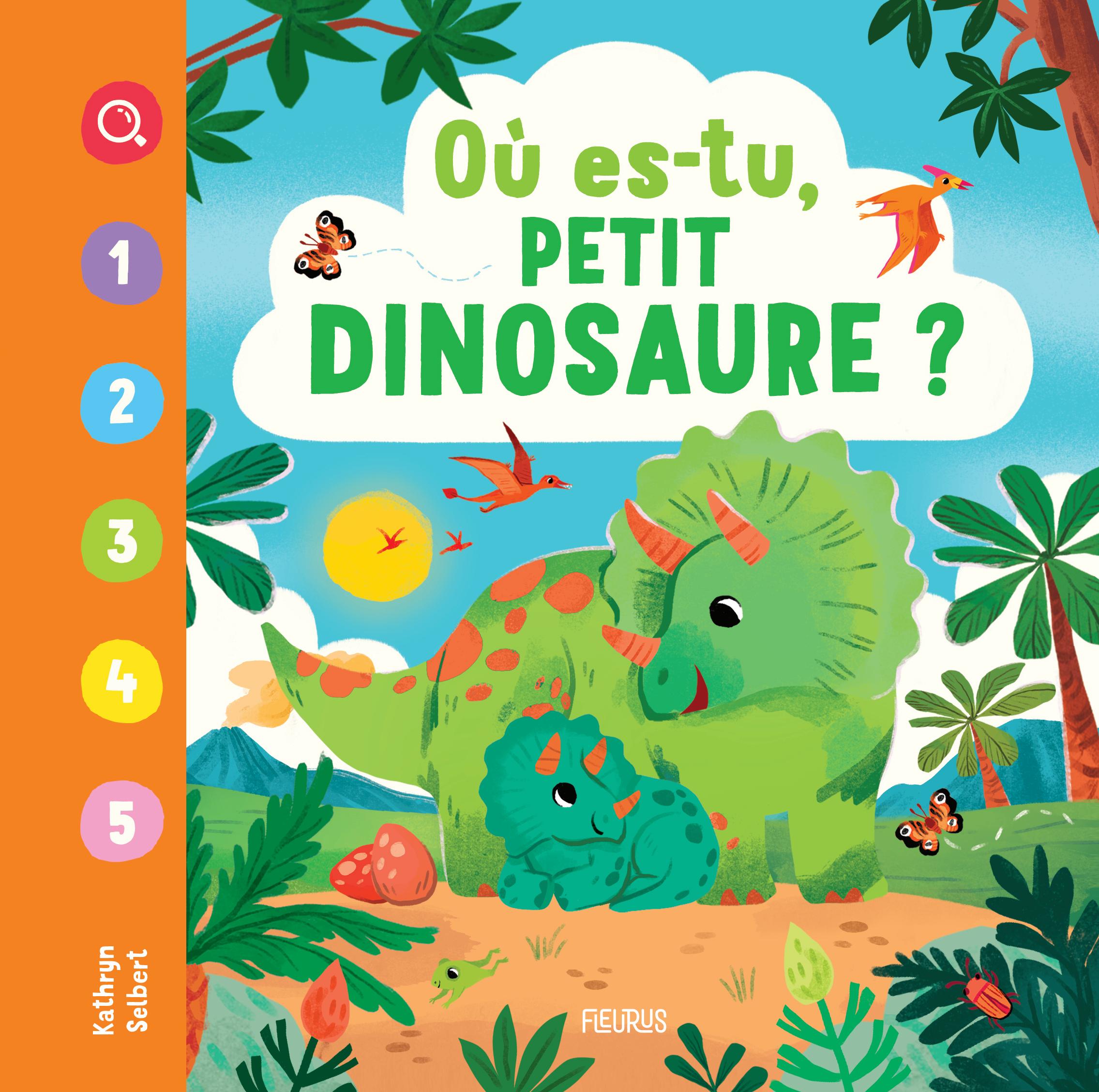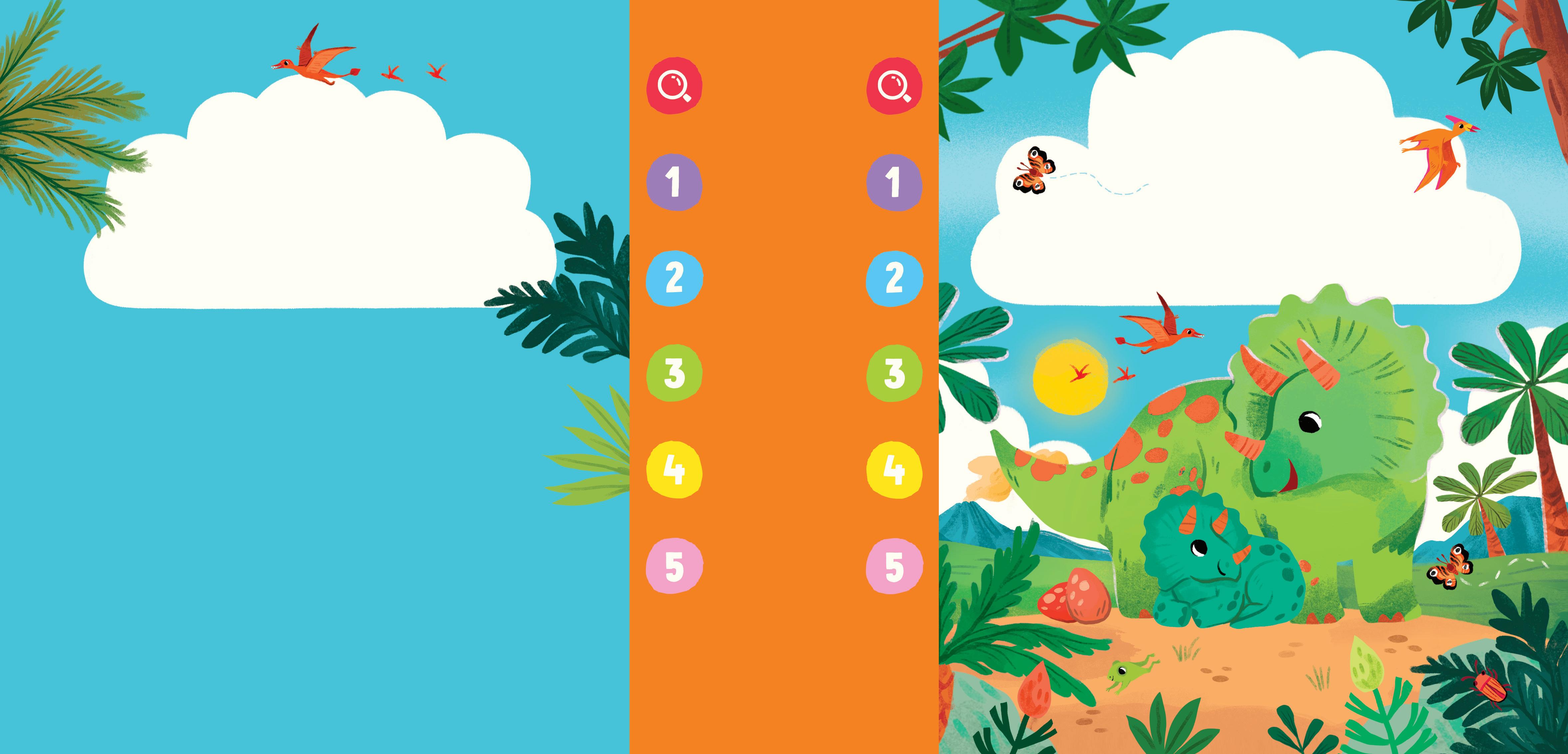 adoreront découvrir les couleurs et les chiffres de ce monde préhistorique, trouver les dinosaures et d’autres animaux dans des décors très colorés.