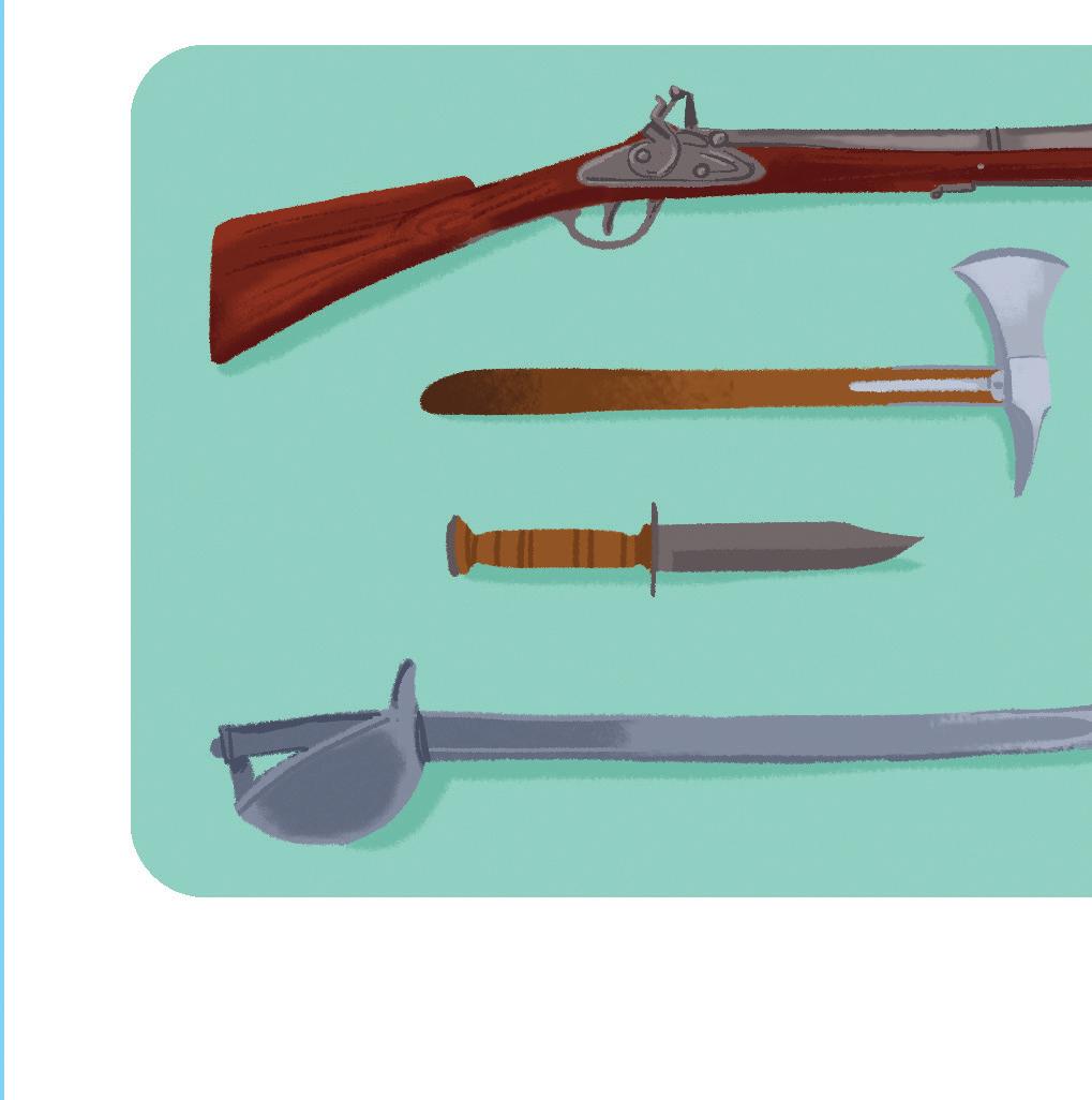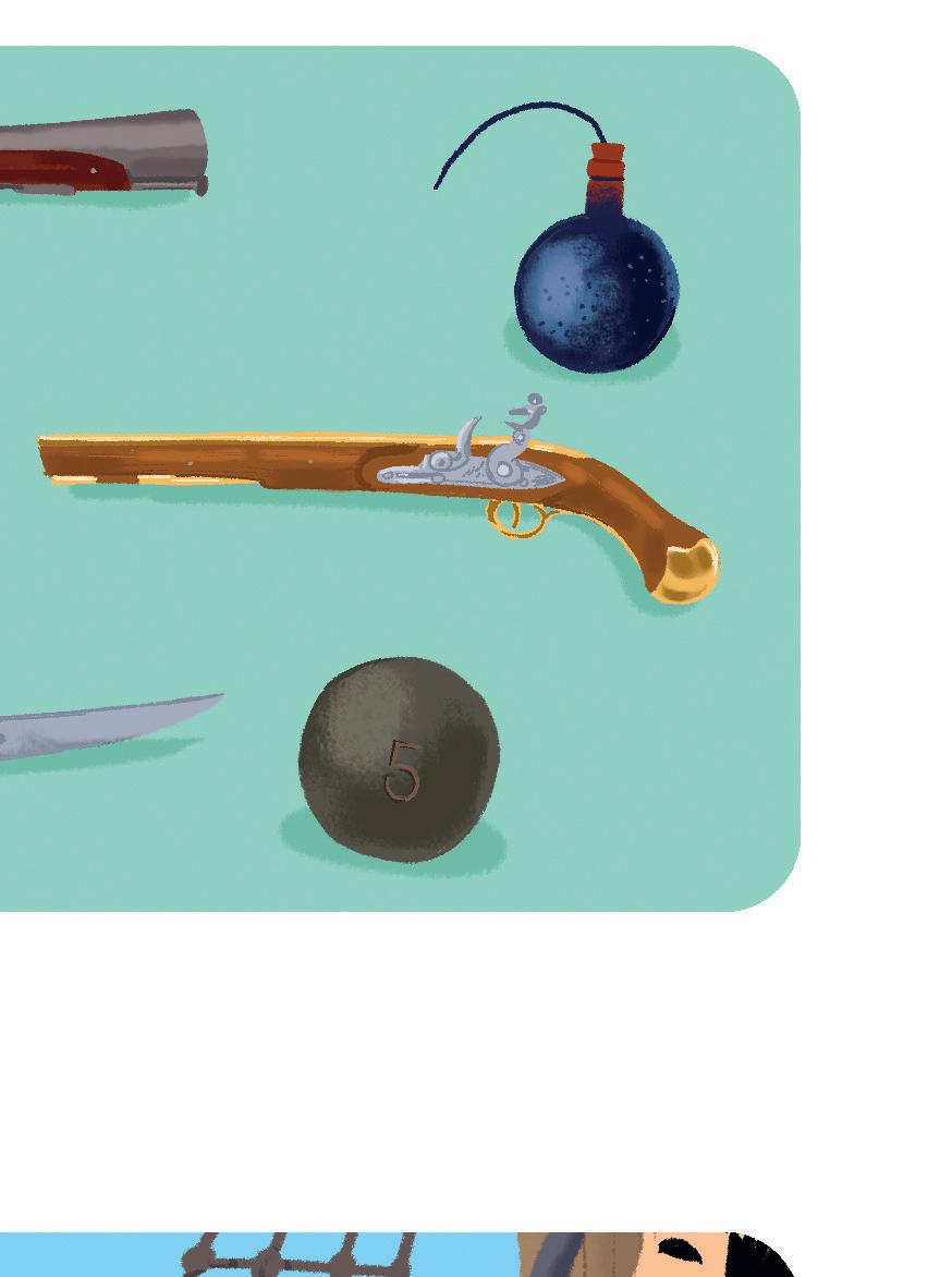 Un couteau pour se défendre, une hache pour couper les cordages d’un bateau, un pistolet pour tirer sur les marins, une grenade pour faire exploser le navire ennemi : le pirate possède toute une panoplie d’armes.