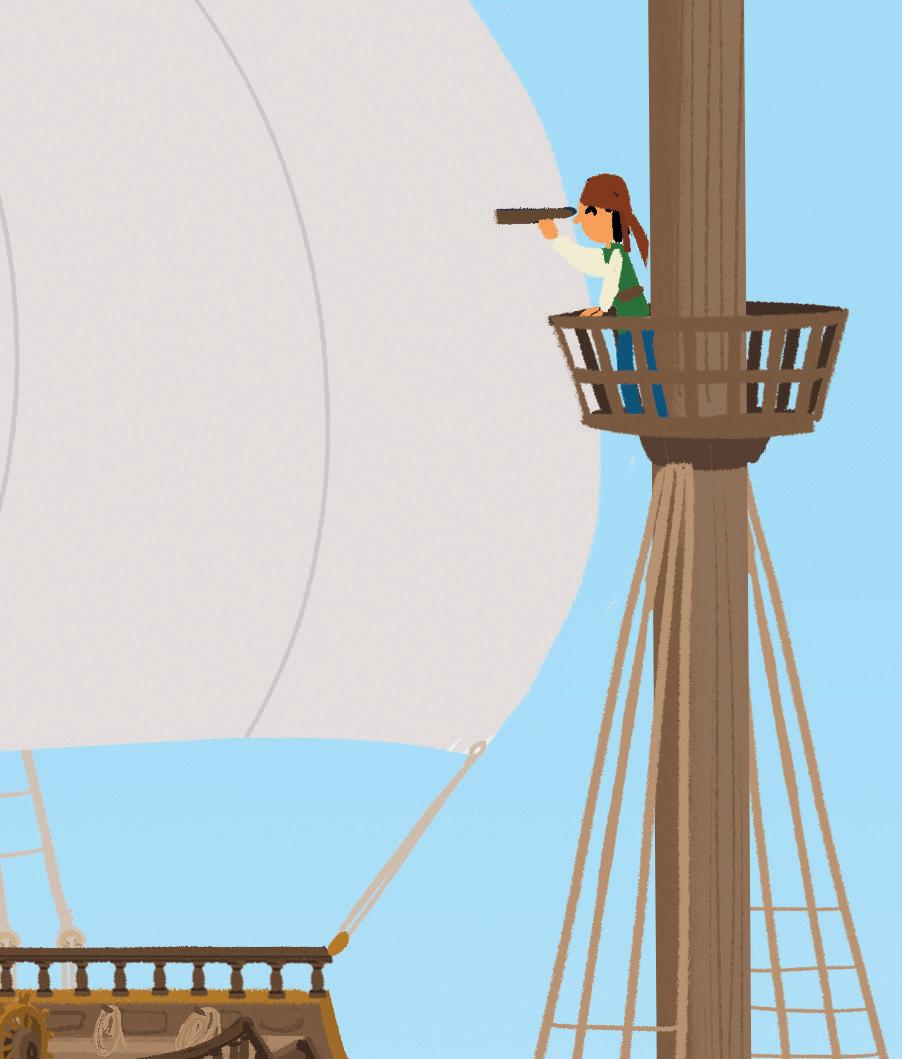 Le pirate tout en haut du mât prévient l’équipage dès qu’il voit un navire. C’est la vigie.