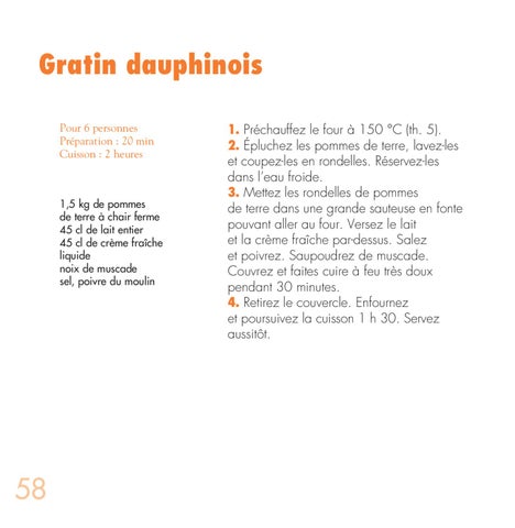 Gratin dauphinois Pour 6 personnes Préparation : 20 min Cuisson : 2 heures